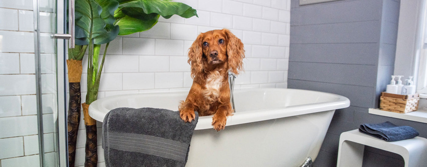 Most dogs would rather skip bath time but alongside regular brushing, washing your dog with a natural dog shampoo is an equally important step of your dog’s grooming regime. As well as cleaning the coat and removing dust and mud, washing also helps remove any allergens, such as pollen, that can be picked up whilst running in the grass.