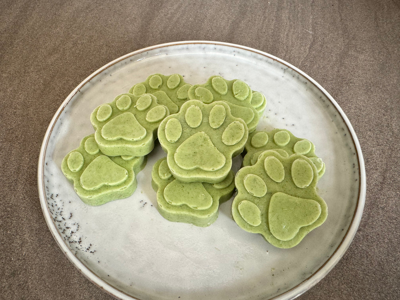 - Using a silicone tray (like this paw shaped one), fill the cavities about 3/4 full.