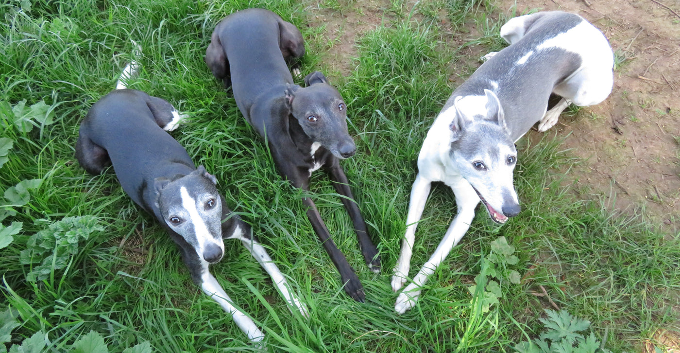 "Molly ages around 13, Bluebell 11 and Pixie 6, are my three Whippets.
