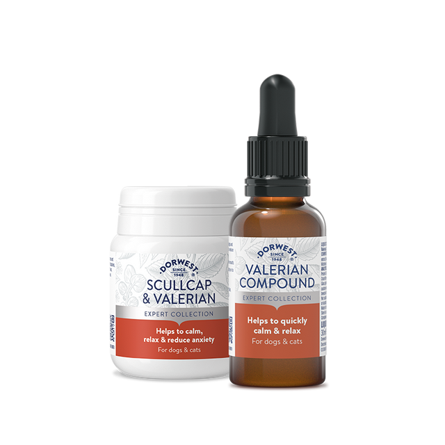 Our calming combos contain Scullcap & Valerian Tablets and Valerian Compound, both formulated to support anxiety, including noise anxiety from fireworks, in dogs or cats.