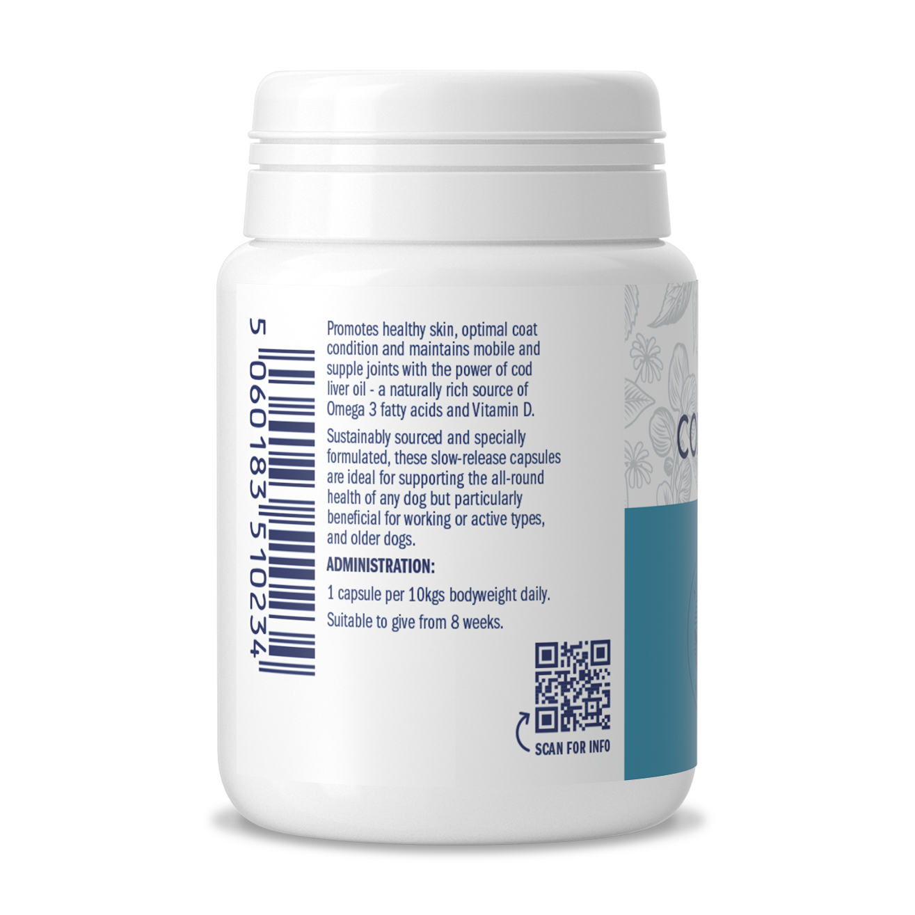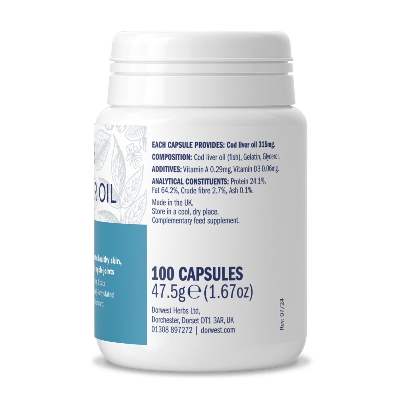 Omega 3 is the hardest of the omegas to get from diet alone and vitamin D is also hard to find in most natural ingredients. This makes Dorwest Cod Liver Oil Capsules suitable for everyday use - especially for dogs that are always on the go.