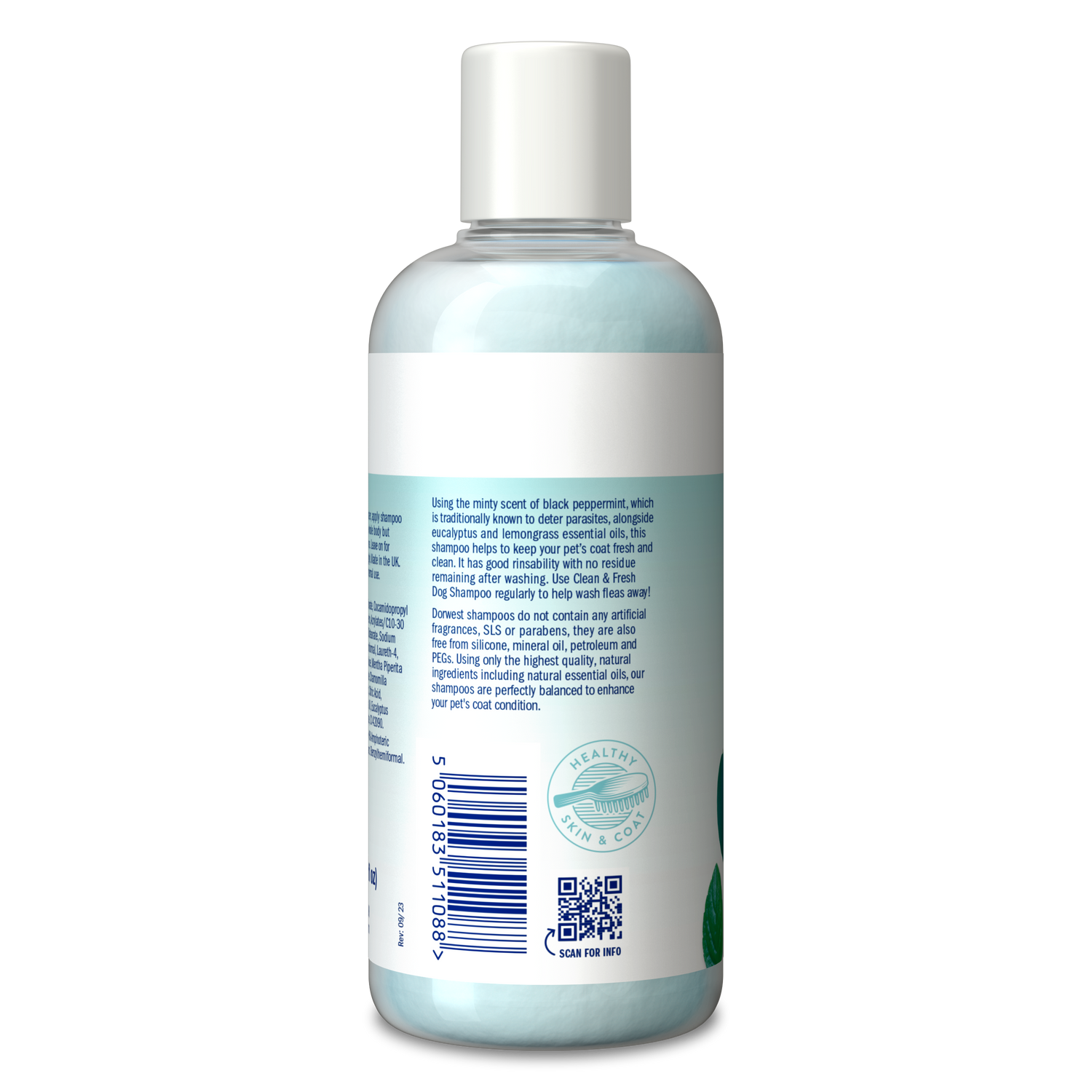 Our Clean & Fresh Shampoo uses the distinctive scent of black peppermint essential oil, alongside eucalyptus and lemongrass essential oils, this shampoo helps to keep your pet's coat fresh and clean. It has good rinsability with no residue remaining after washing.