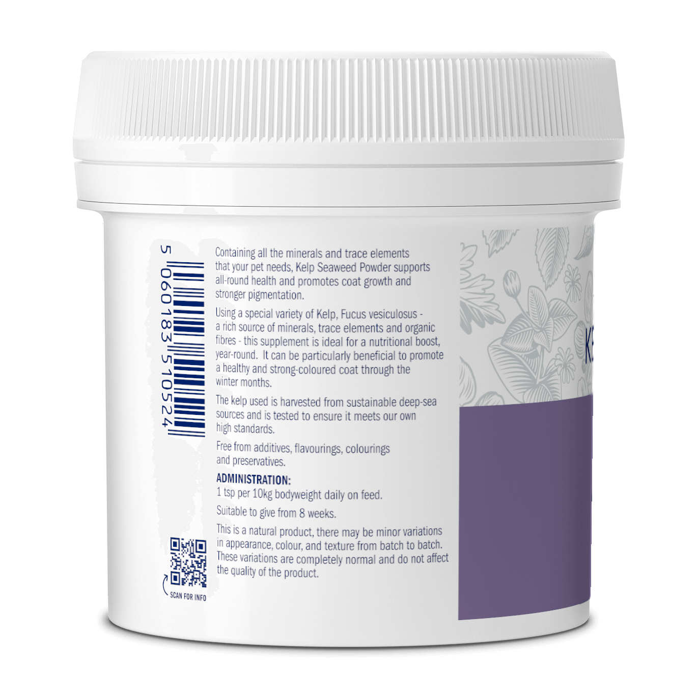 Our Kelp Seaweed Powder also contains all of the minerals and trace elements required by the body, to provide your pet with great all-round nutritional support.