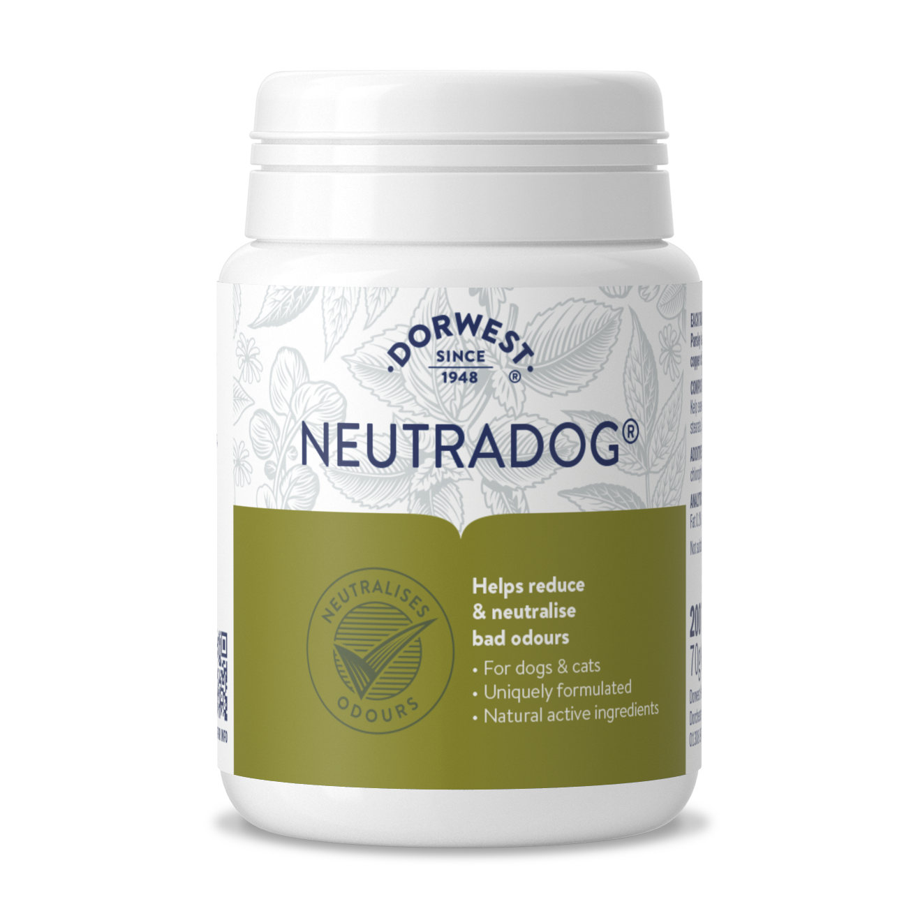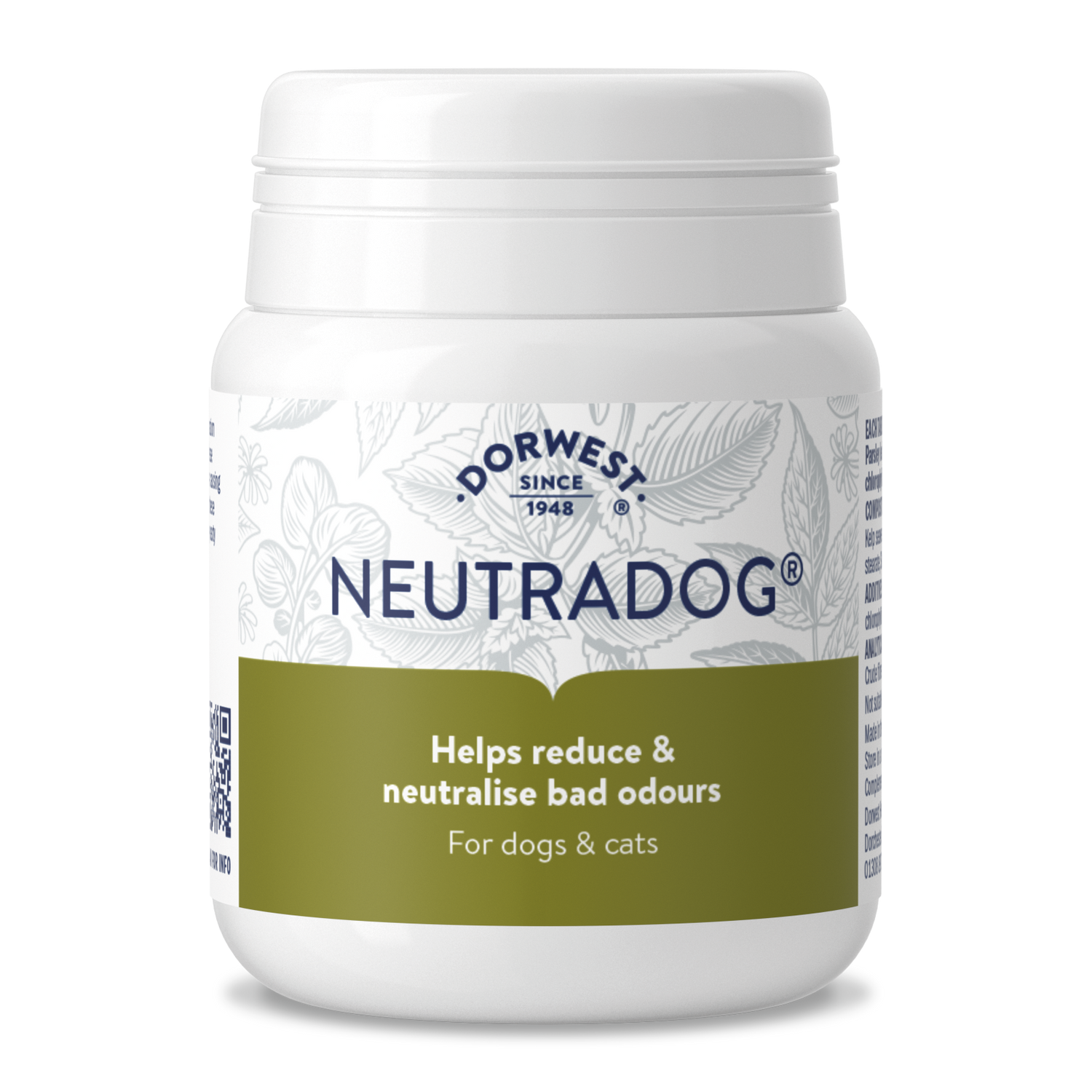Natural oils from your dog’s hair follicles are essential for keeping their skin healthy but have a unique smell – your dog’s own signature scent! Along with the glands in their ears, which produce a light yeasty smell, these are all normal body odours, and can be kept to a minimum with normal, regular bathing and grooming, along with our Neutradog® tablets to effectively neutralise the smell.