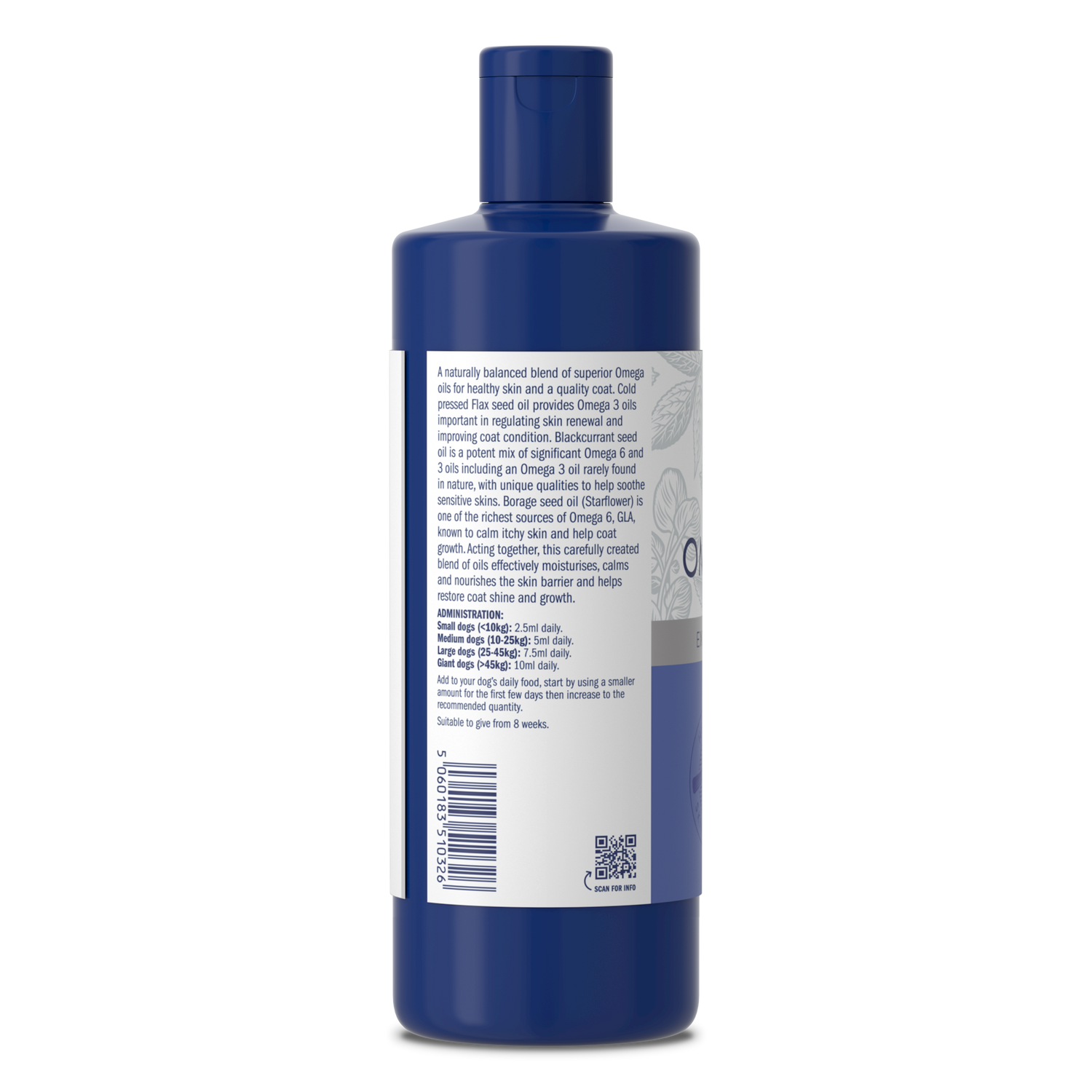 - Blackcurrant seed oil is a highly nutritious oil, rich in omega 3 and 6. It includes an omega 3 that has unique properties to help soothe sensitive skin and is perfect to help dogs with thin, poor coats.